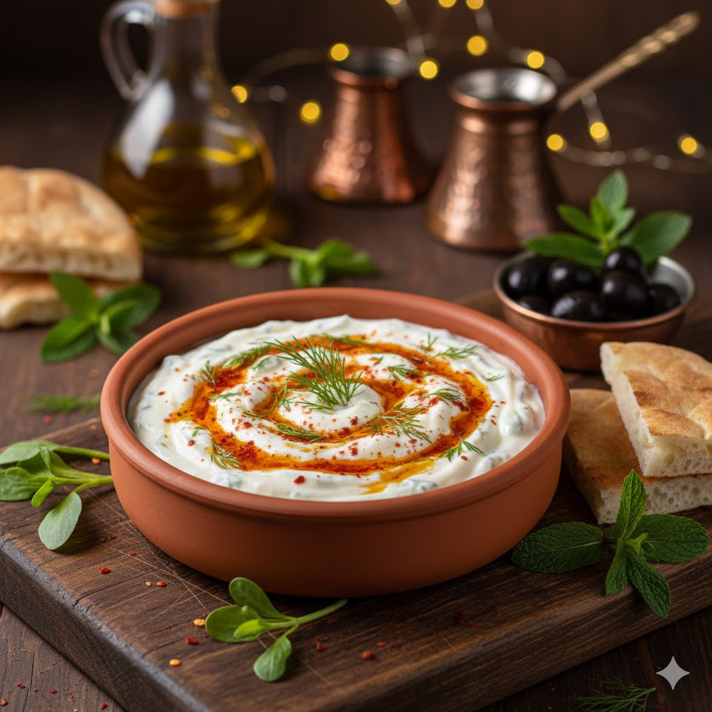Taze semizotu yaprakları, süzme yoğurt ve sarımsağın dengeli uyumuyla hazırlanır.